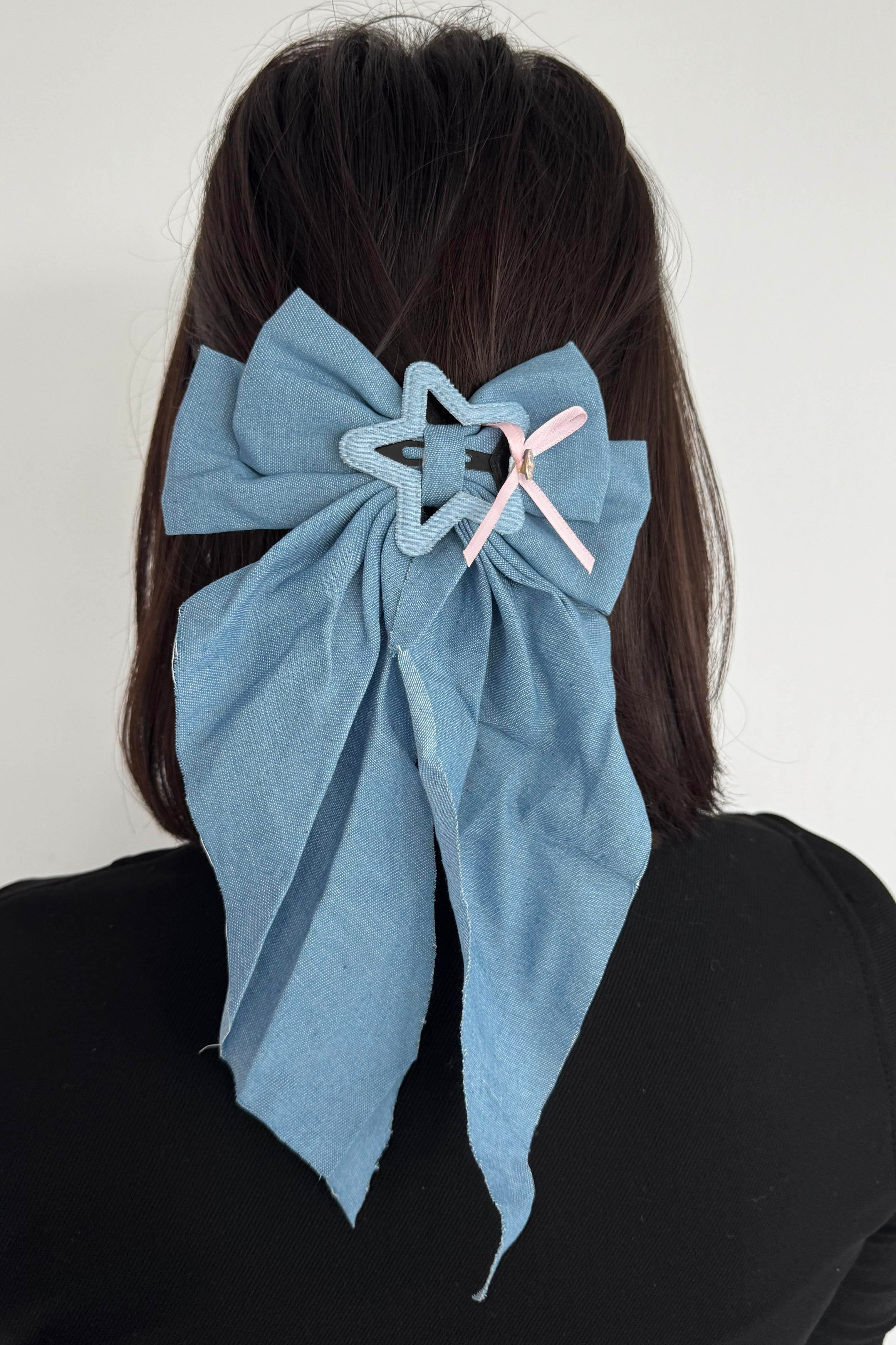 Mavi Renk Yıldız Figürlü Kurdele Otomat Toka