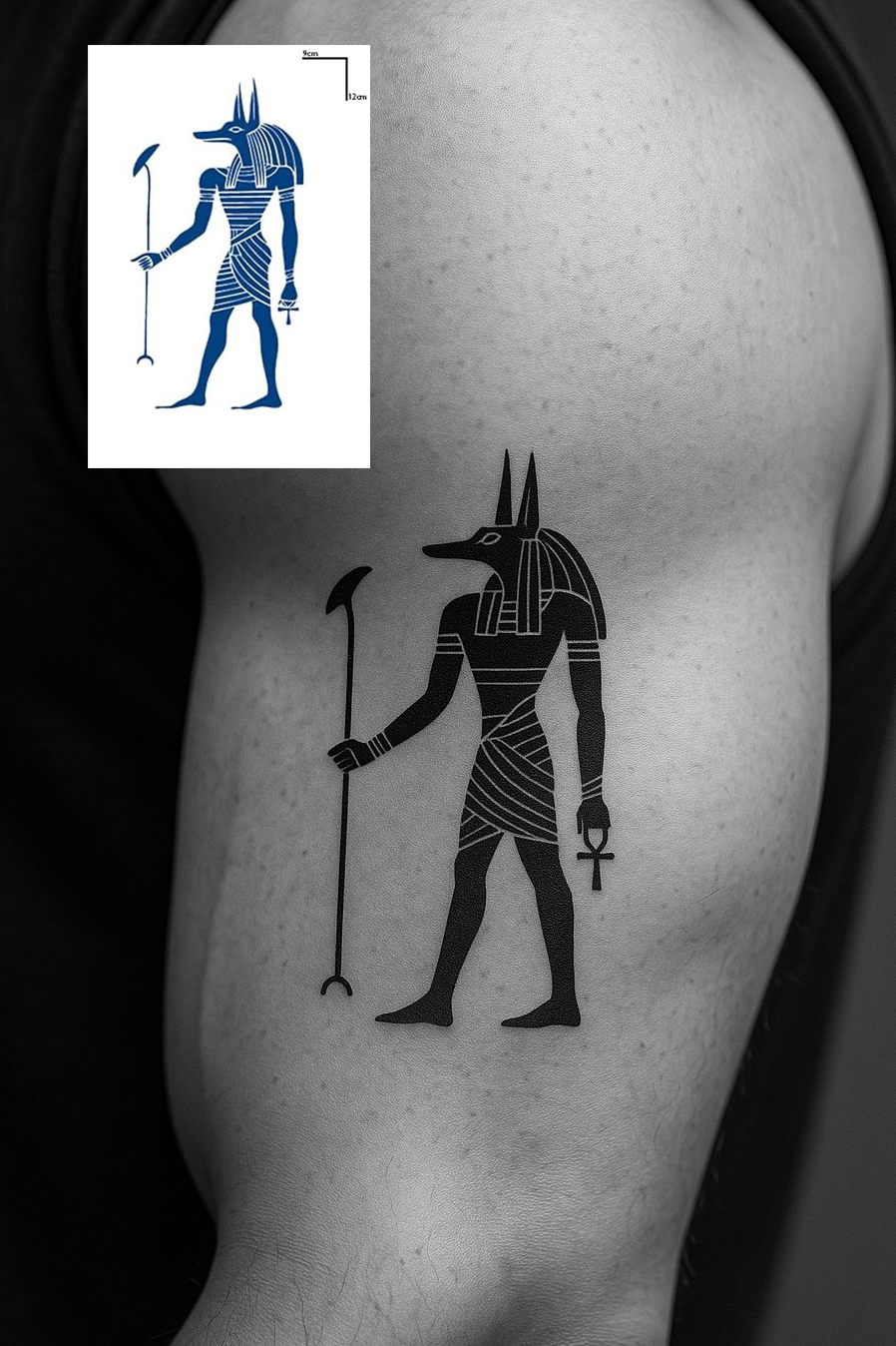 Mısır Anubis Figürlü 12 Saat Sonra Kararan Geçici Dövme Tattoo