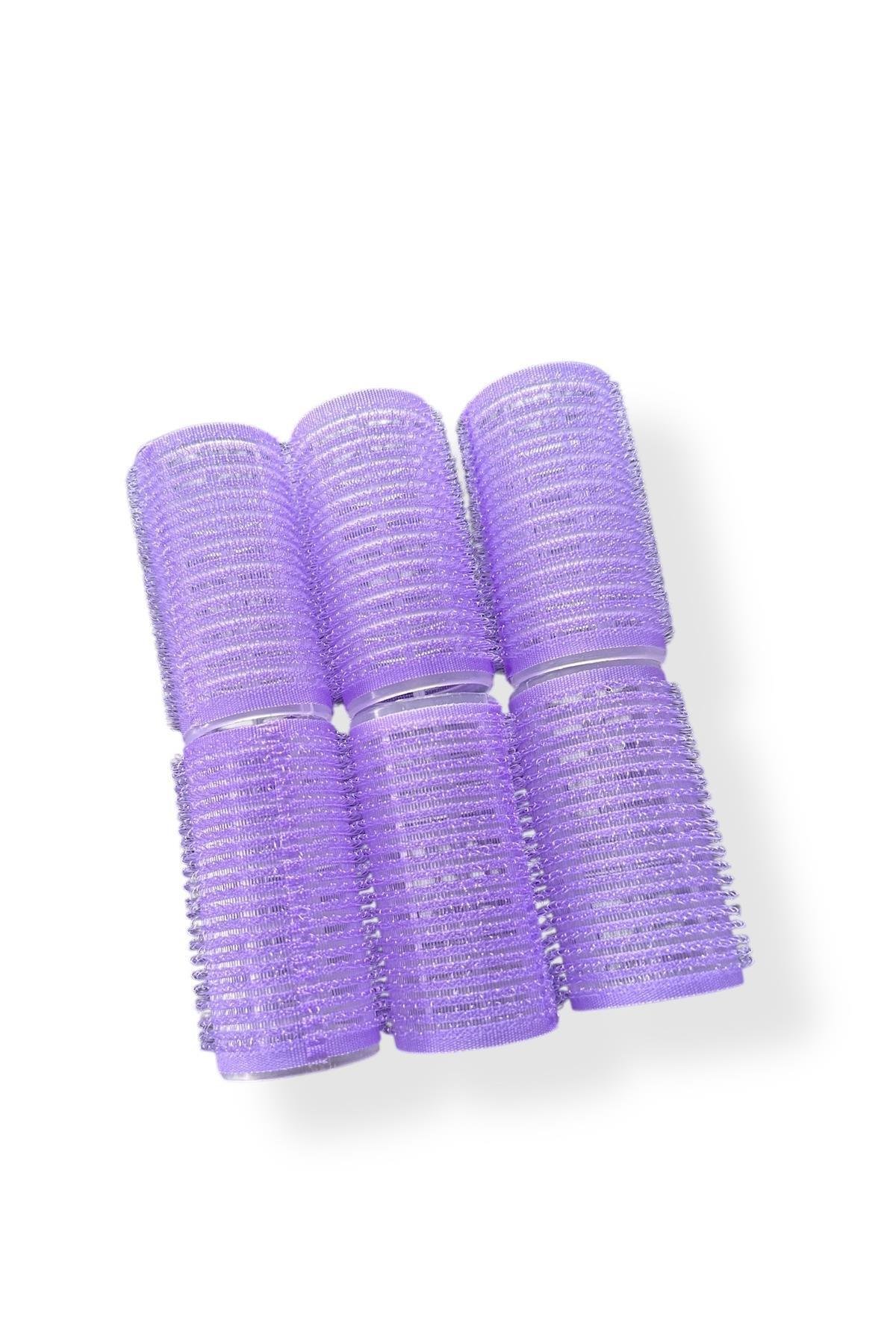 Mor Renk 6 Adet Bigudi Cırtlı/ Yapışkanlı Saç Bigudisi /Orta Boy