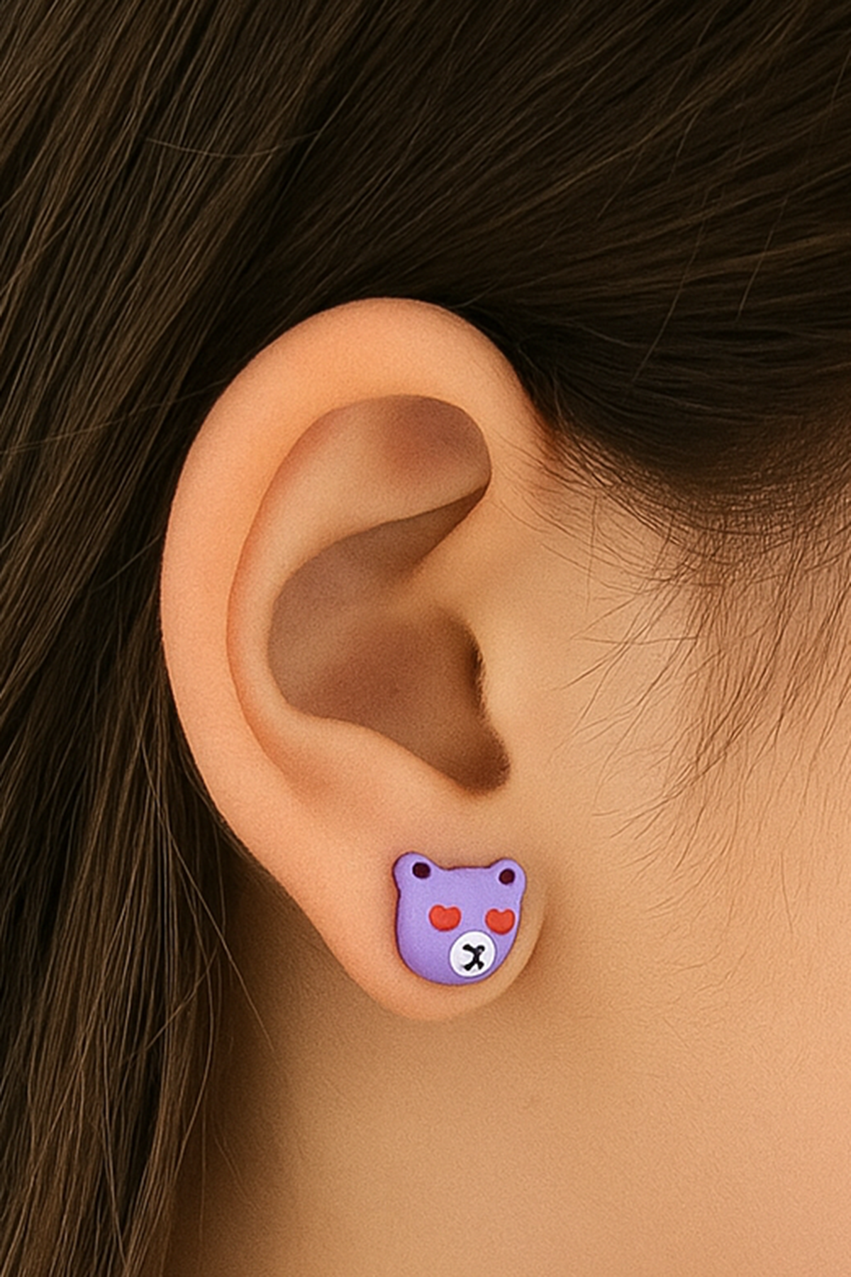 Mor Renk Ayıcık Figürlü Çocuk Küpe (Çift)