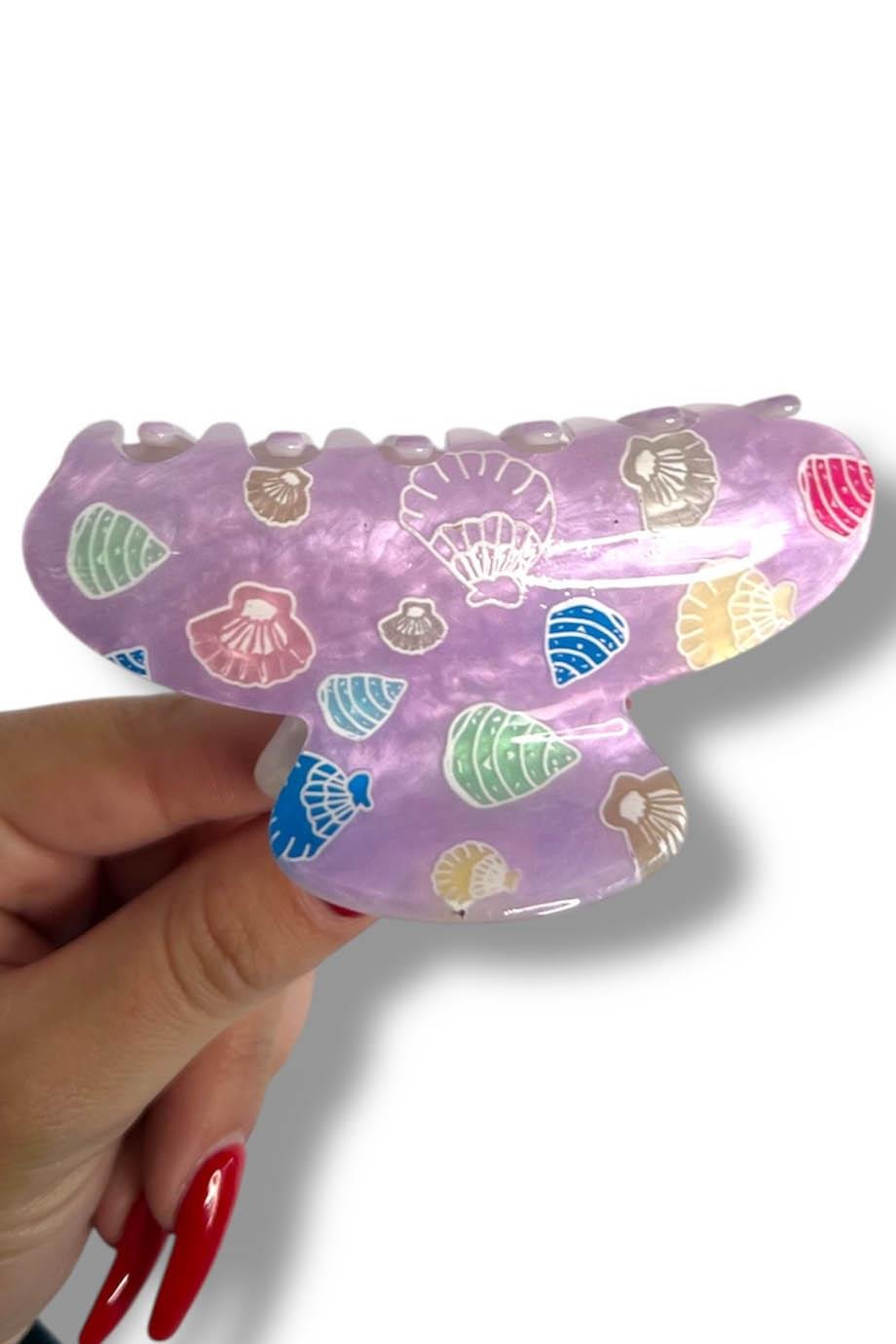 Mor Renk Deniz Kabuğu Figürlü Mandal Toka