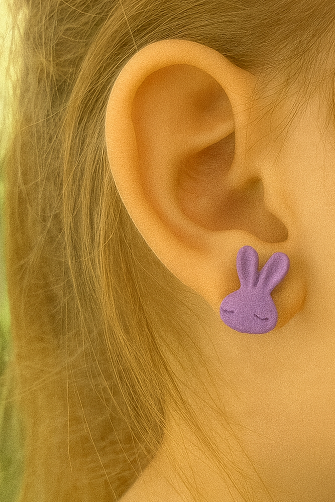 Mor Renk Tavşan Figürlü Çocuk Küpe (Çift)