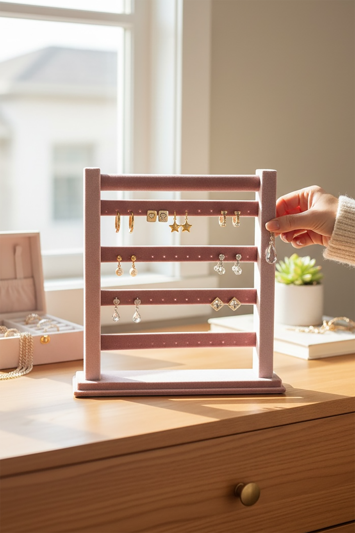 Pembe Renk Dört Katlı Küpe Düzenleyici / Organizer