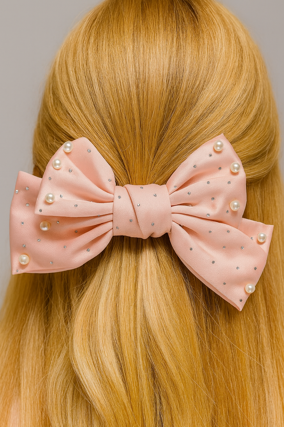 Pembe Renk İnci Ve Taş Detaylı Otomat Toka