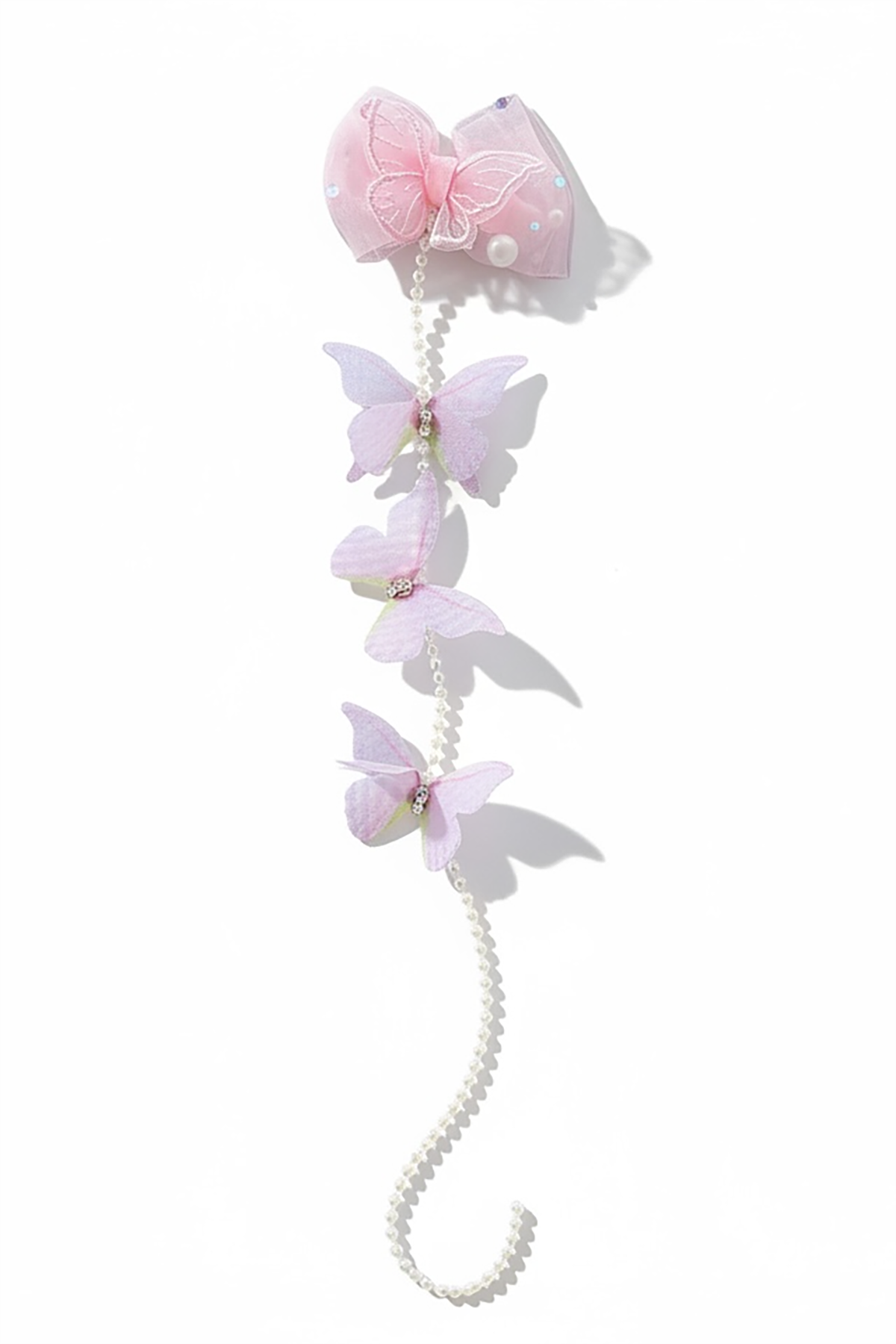 Pembe Renk Kelebek Figürlü İnci Detaylı Çocuk Yan Toka