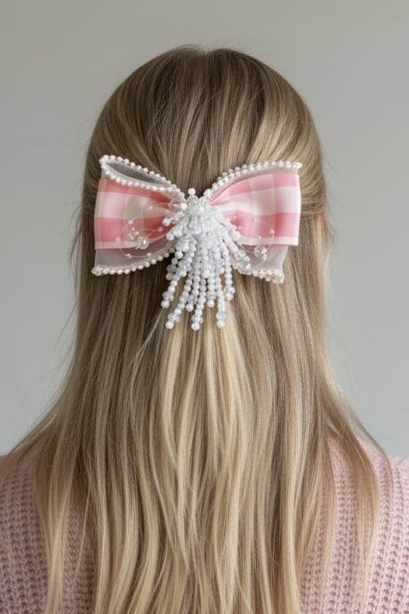 Pembe Renk Kurdele Figürlü İnci Detaylı Pens Toka