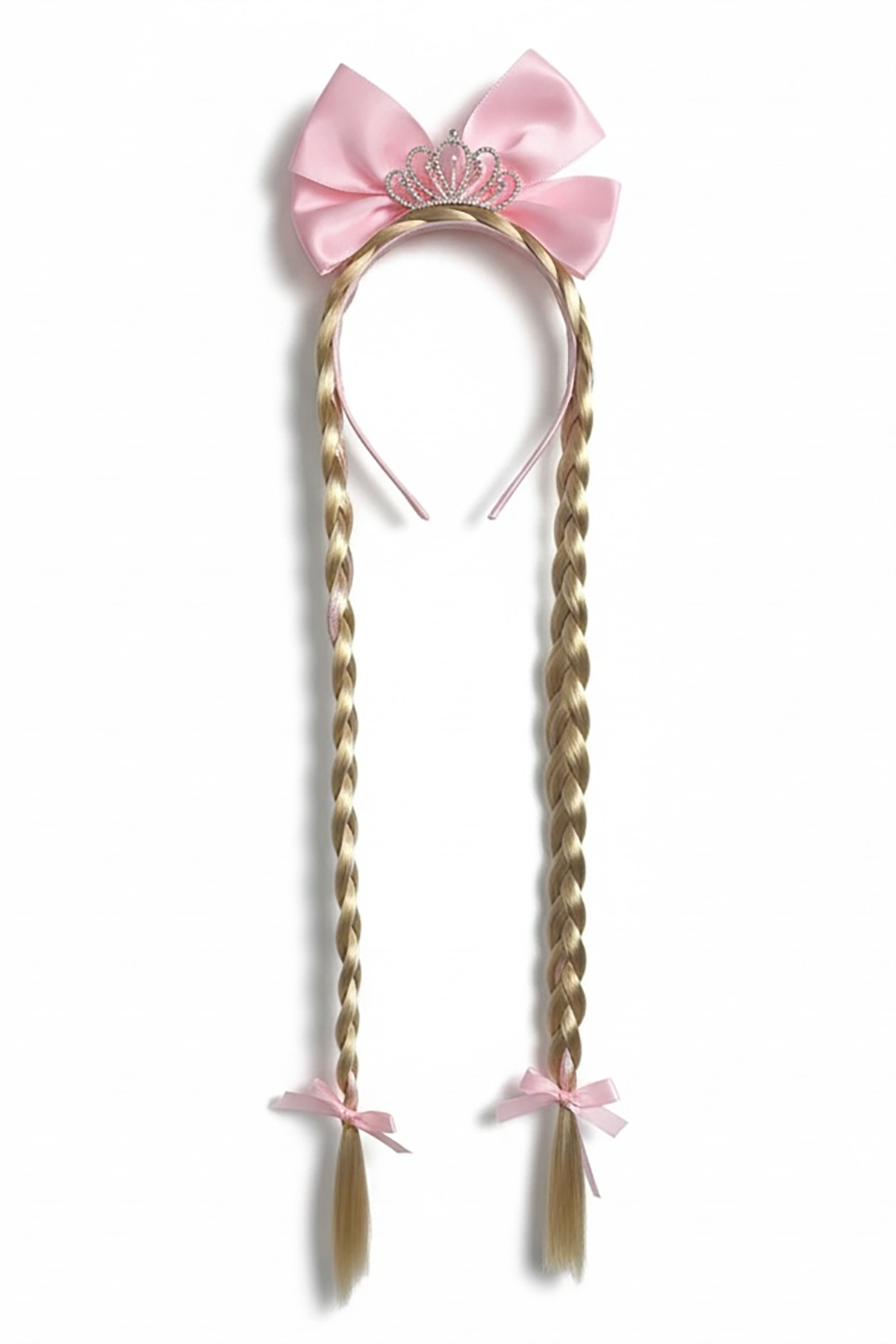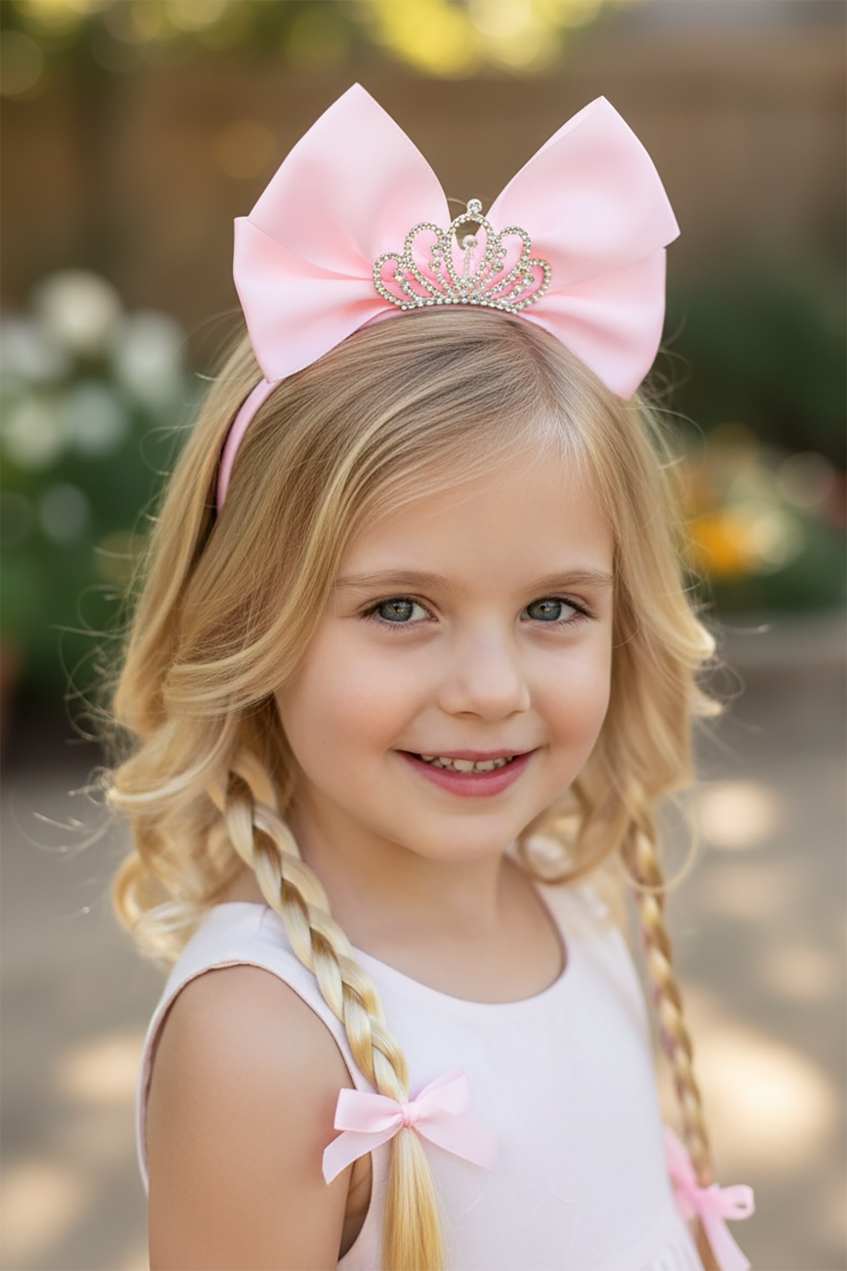 Pembe Renk Kurdele Figürlü Örgü Detaylı Çocuk Taç