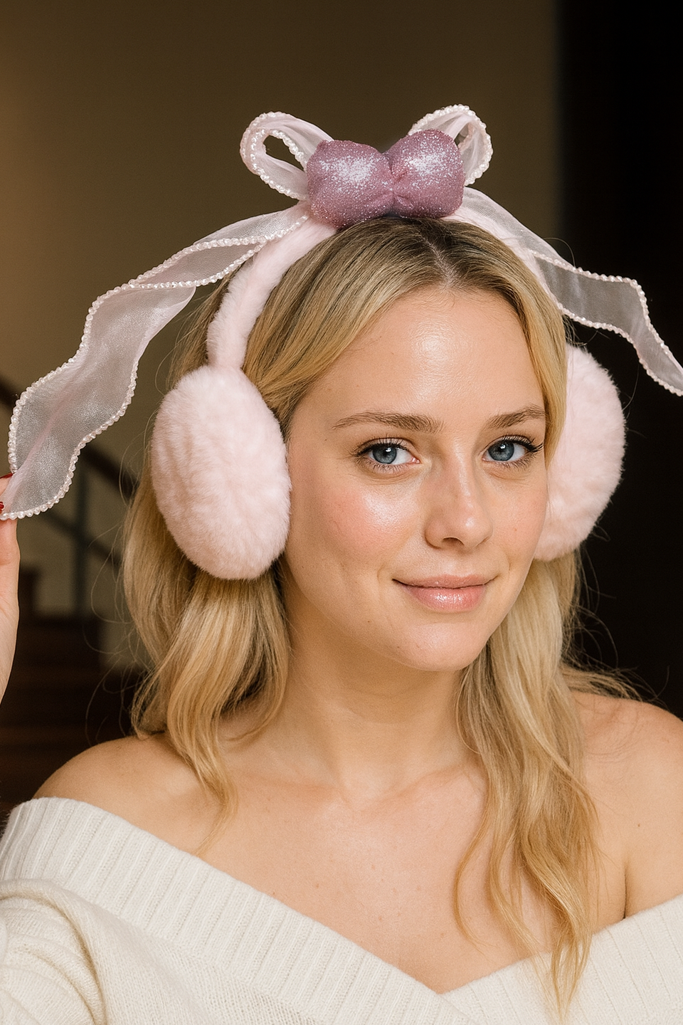 Pembe Renk Kurdele Figürlü Peluş Kulaklık