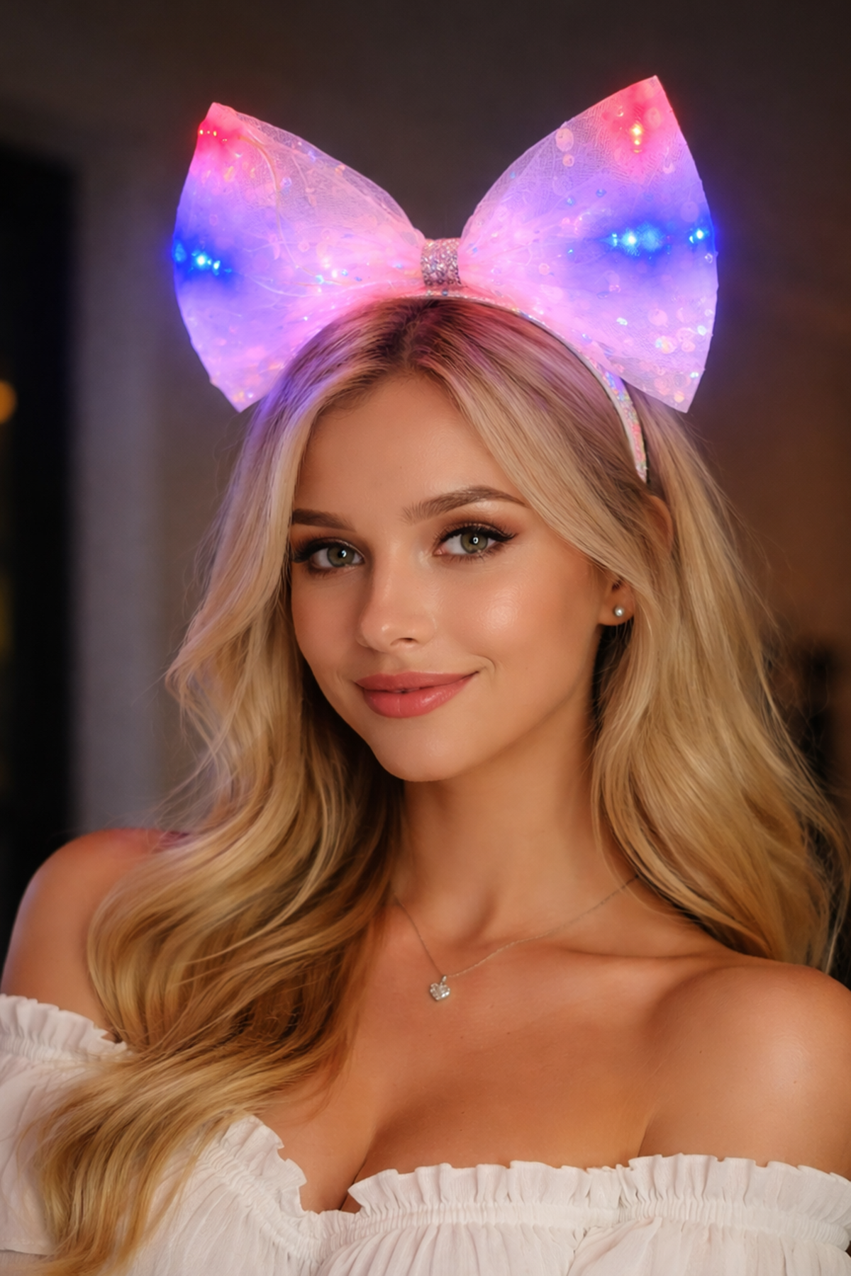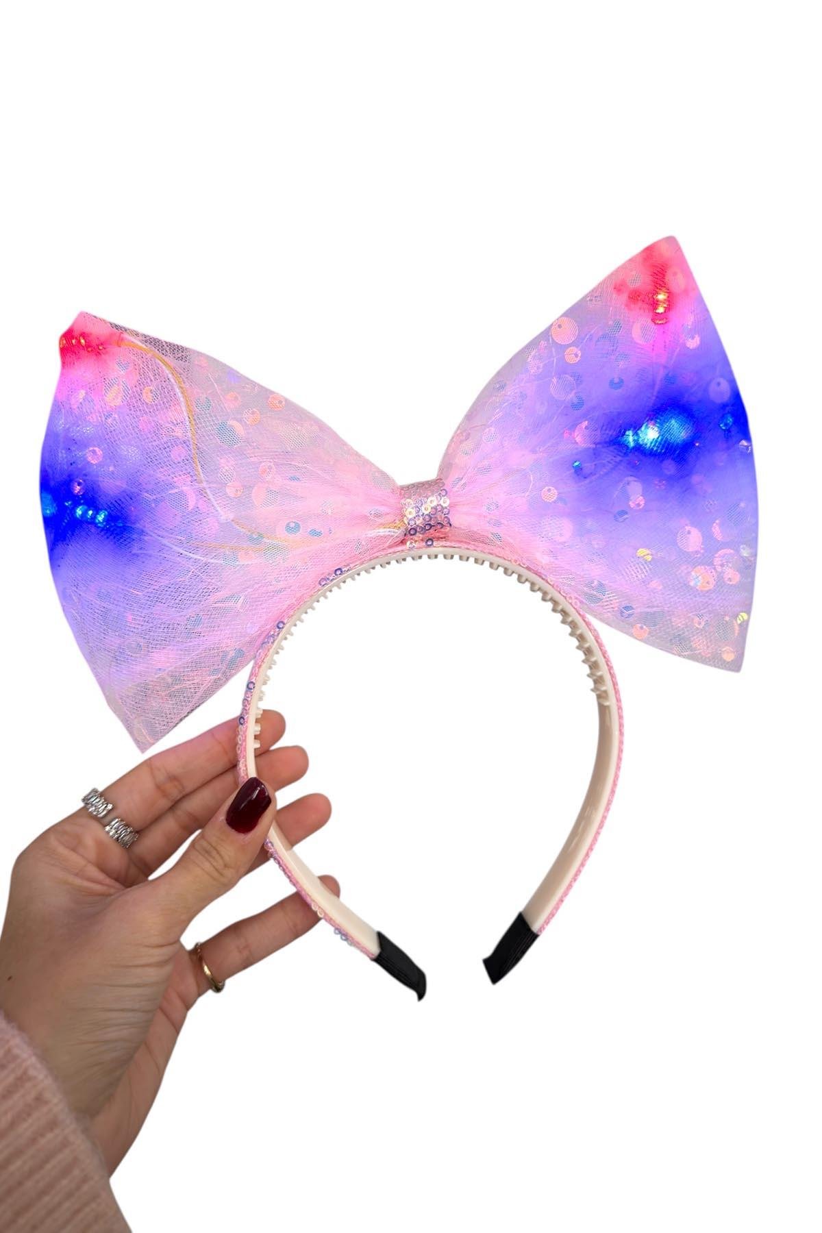 Pembe Renk Pullu Kurdele Figürlü Işıklı Taç