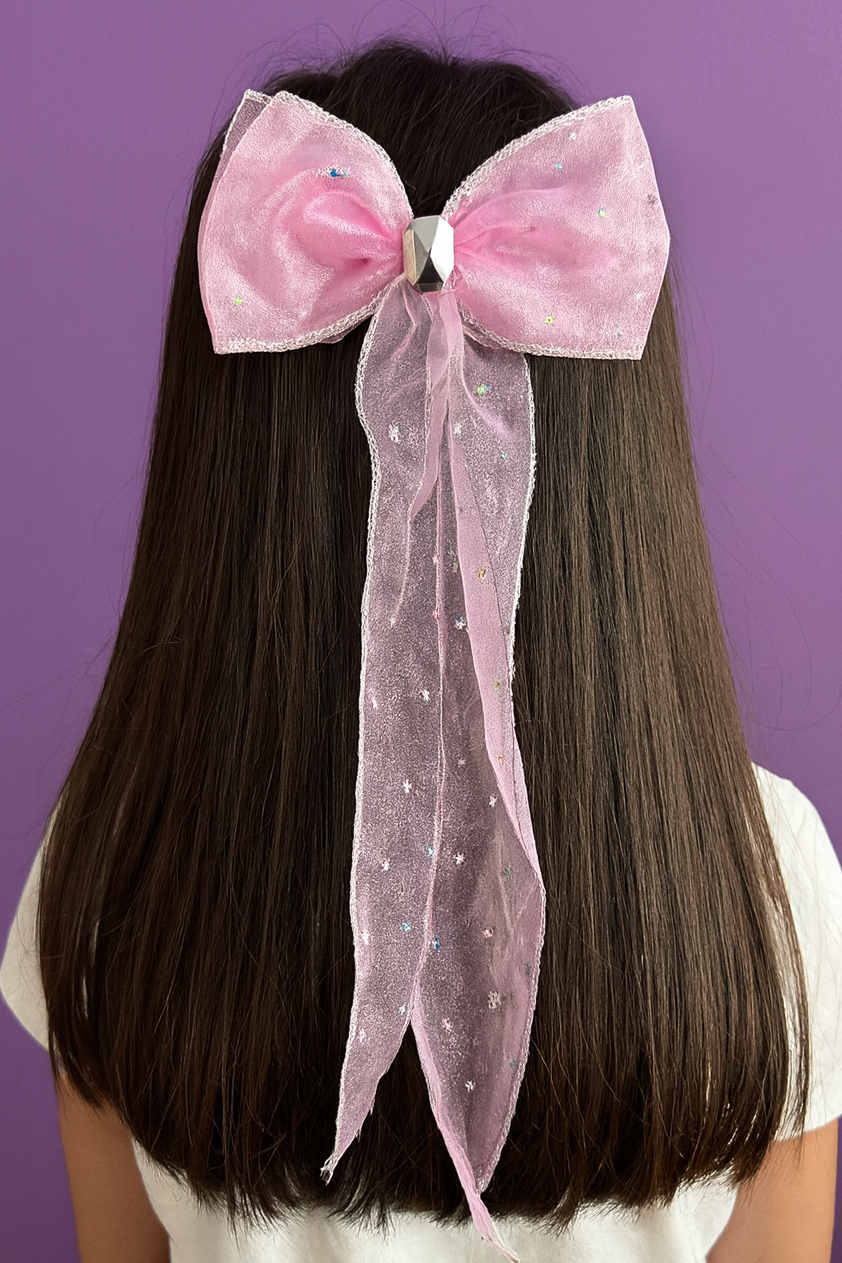 Pembe Renk Yıldız Detaylı Taşlı Kurdele Otomat Toka
