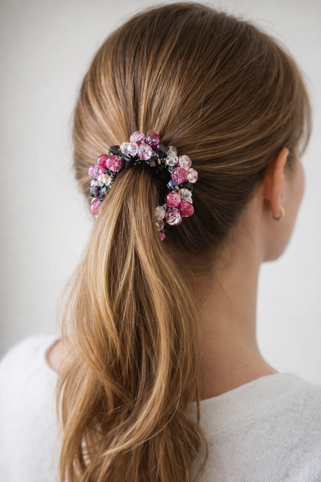 Pembe Ve Siyah Renk Boncuk Detaylı Lastik Toka