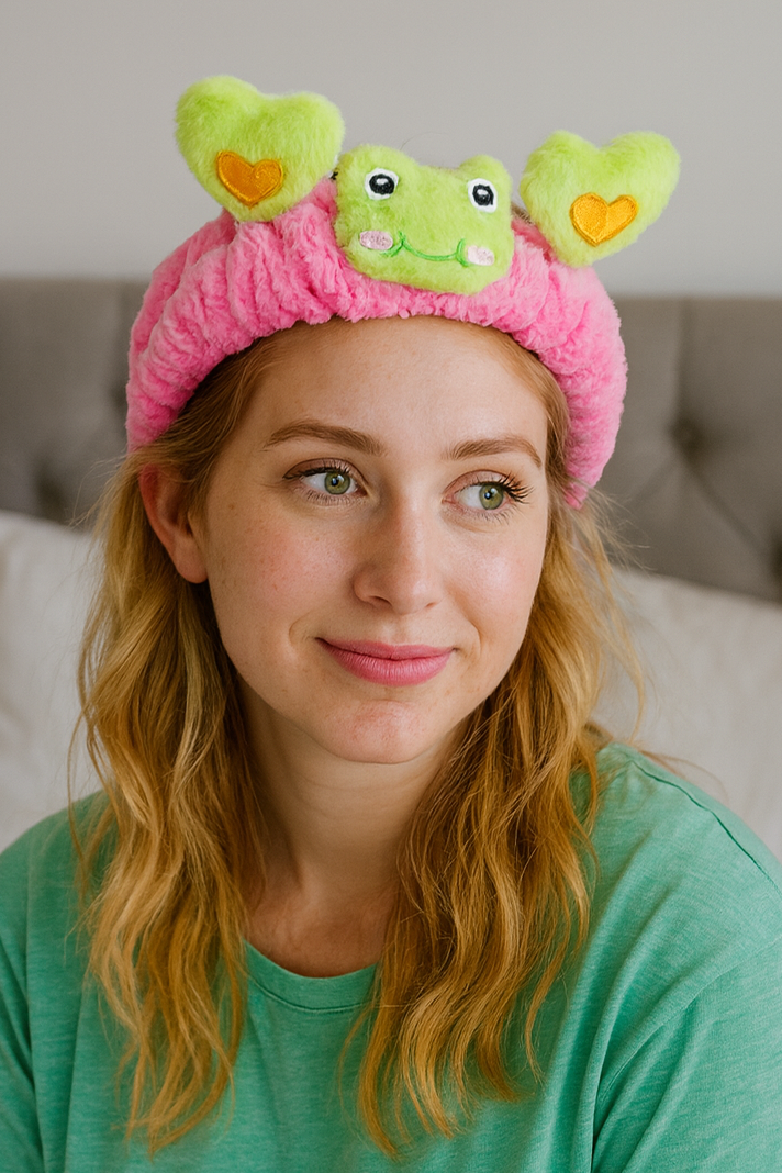 Pembe Ve Yeşil Renk Kurbağa Figürlü Peluş Saç Bandı