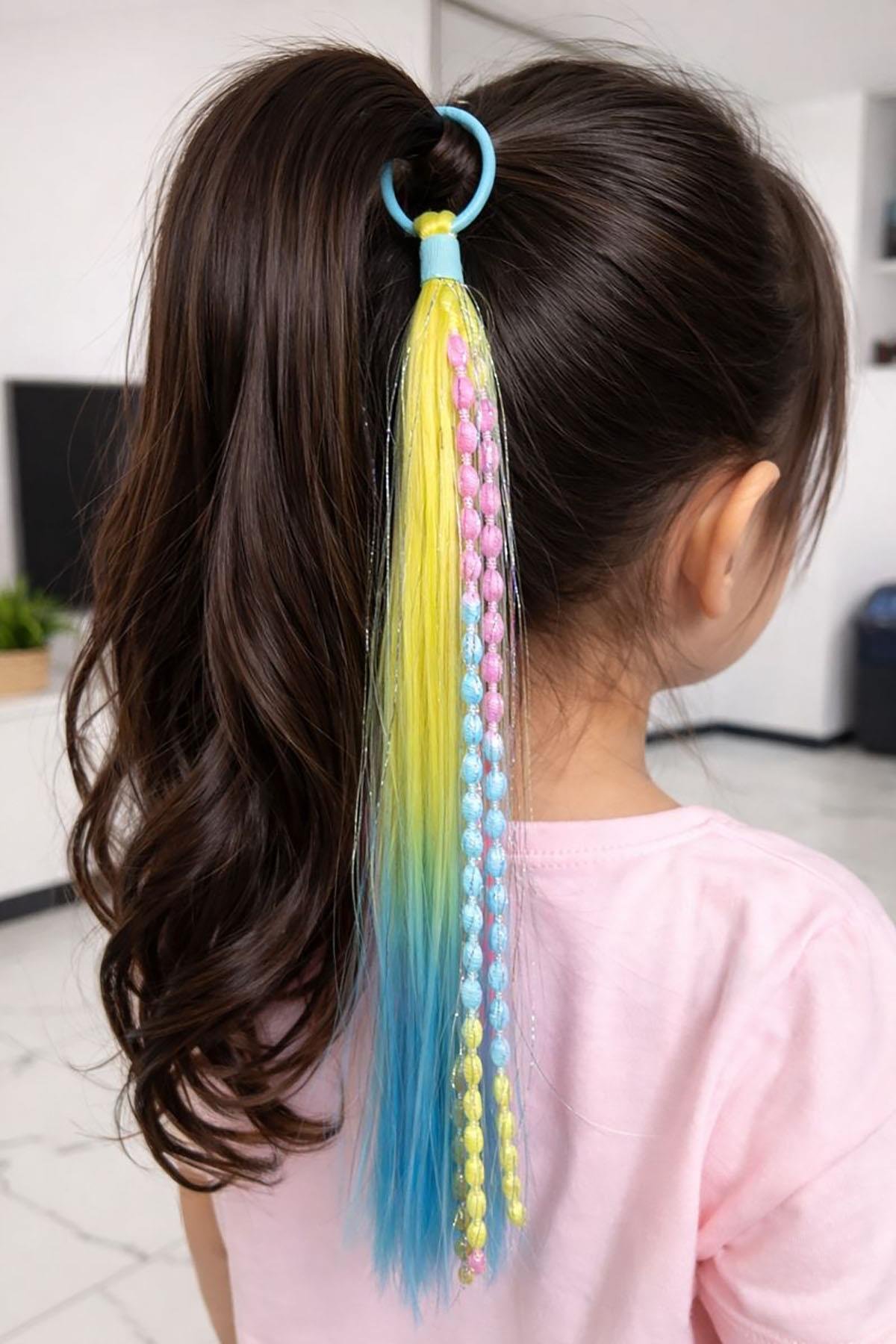 Sarı Ve Mavi Renk Saç Detaylı Lastik Toka