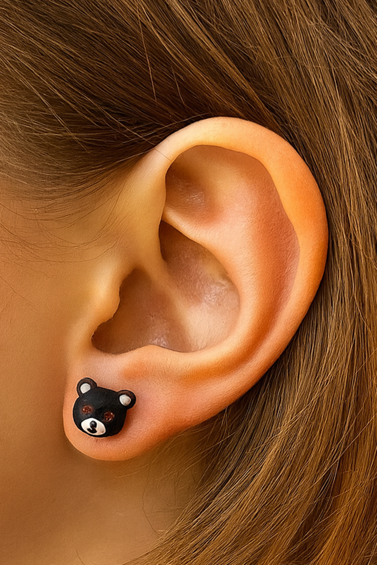 Siyah Renk Ayıcık Figürlü Çocuk Küpe (Çift)