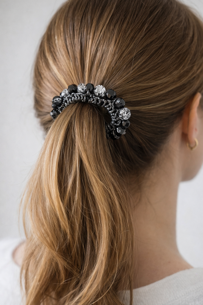Siyah Renk Boncuk Detaylı Lastik Toka