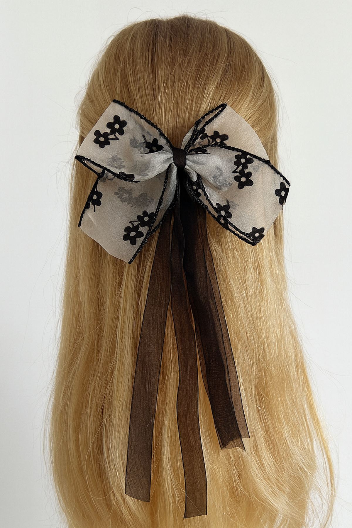 Siyah Renk Çiçek Detaylı Kurdele Otomat Toka