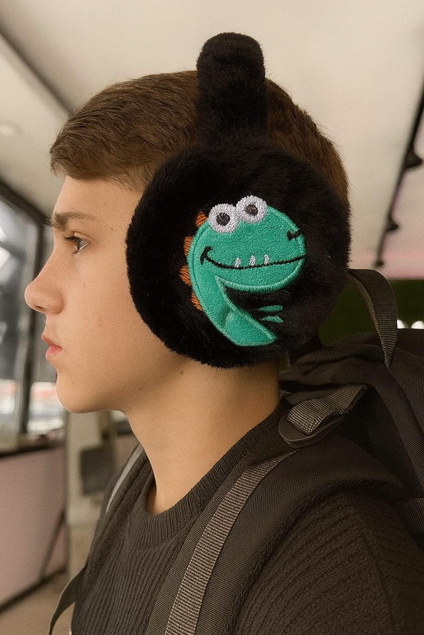 Siyah Renk Dinazor Figürlü Peluş Erkek Çocuk Kulaklık