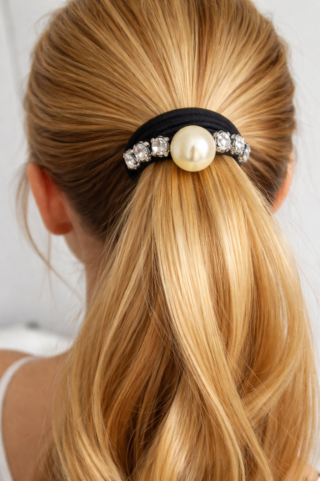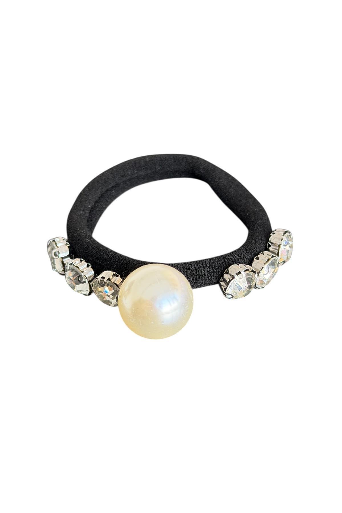 Siyah Renk İnci Ve Taş Detaylı Lastik Toka