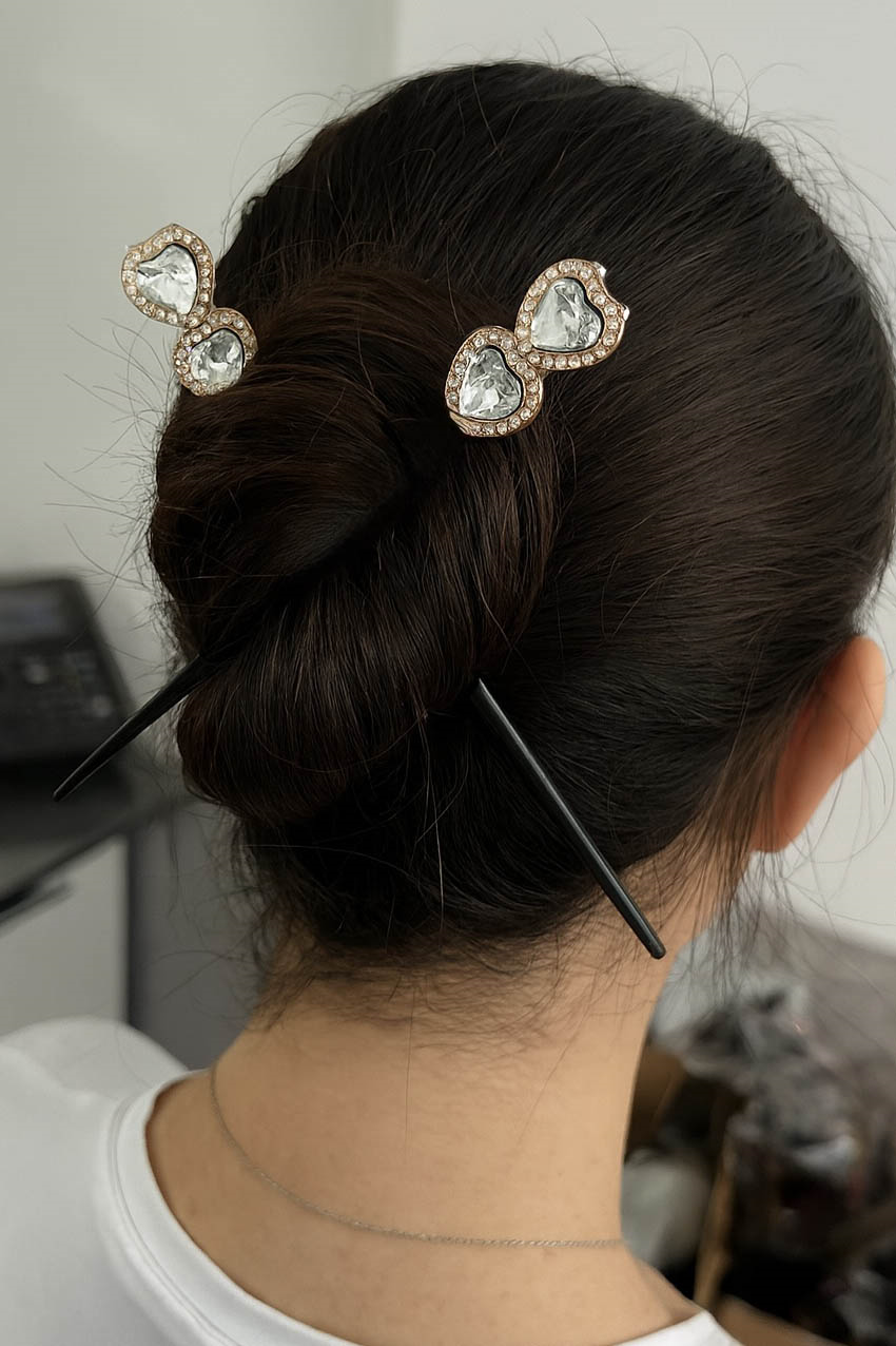 Siyah Renk Kalp Figürlü 2'li Topuz Tokası