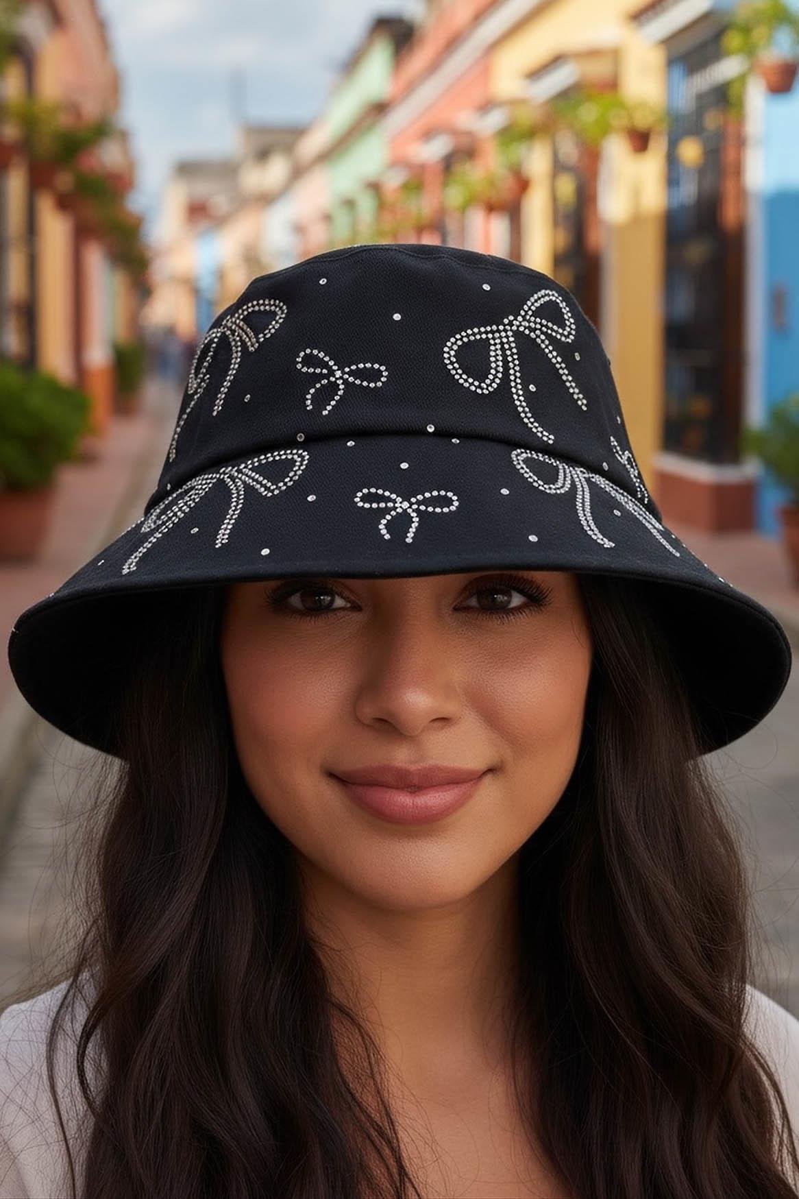 Siyah Renk Kurdele Figürlü Taş Detaylı Tasarım Şapka