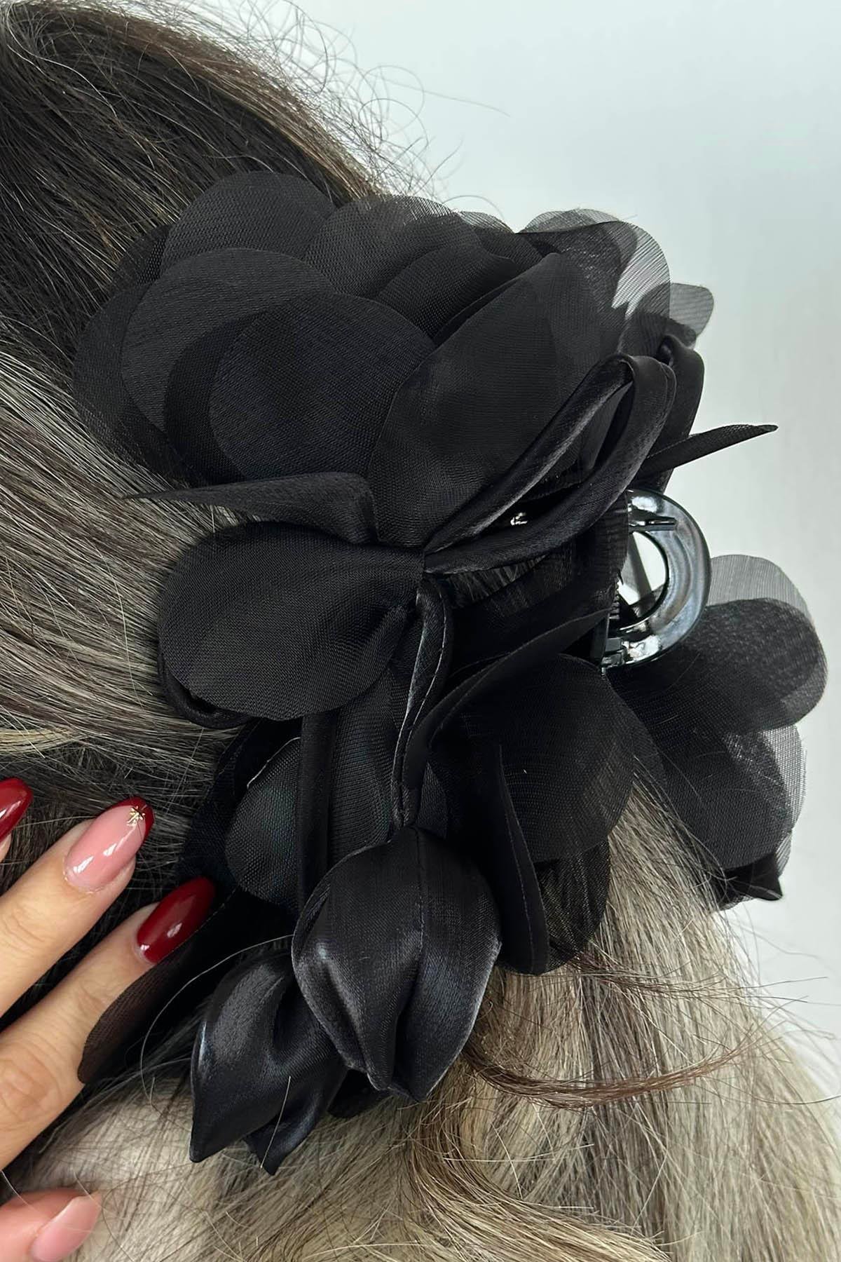 Siyah Renk Lale Figürlü Mandal  Toka
