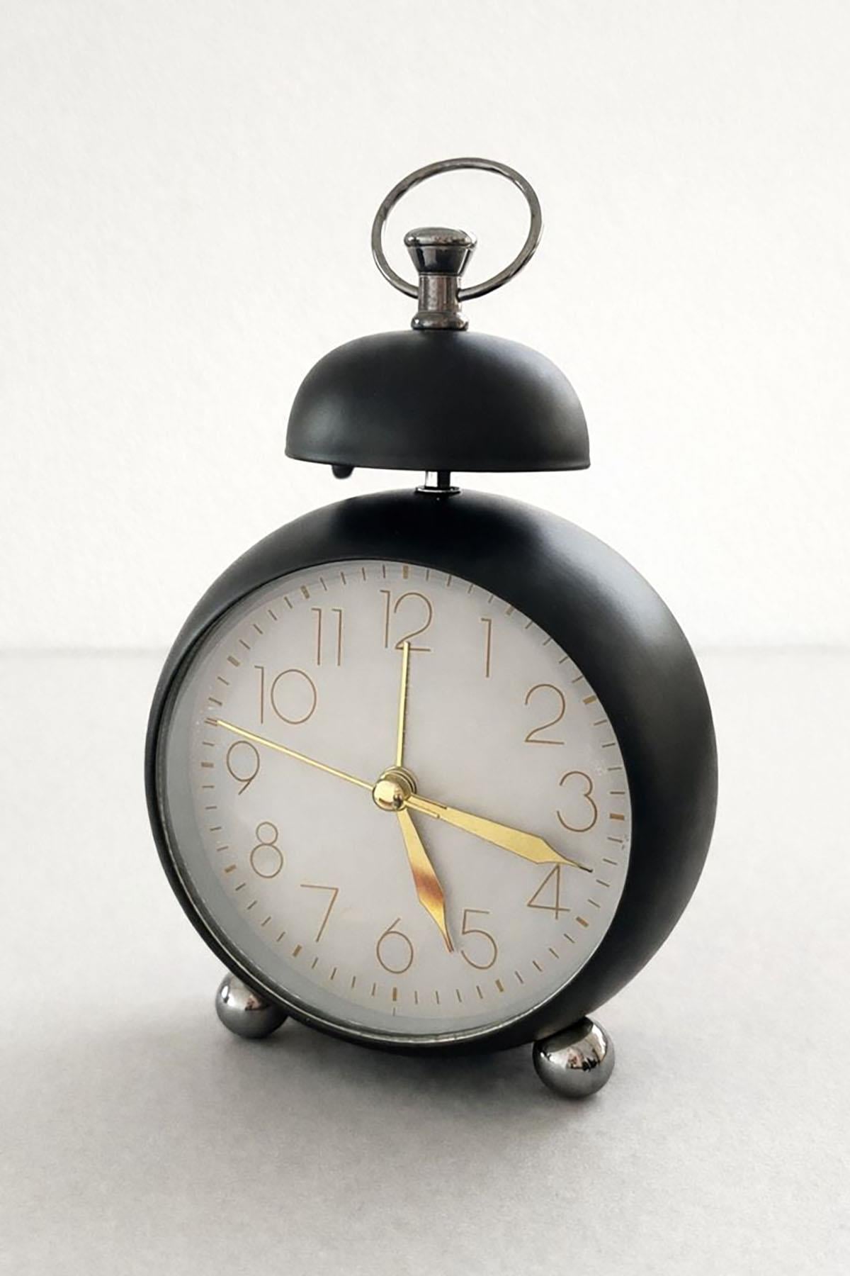Siyah Renk Mini Dekoratif Işıklı Alarmlı Yuvarlak Masa Saati