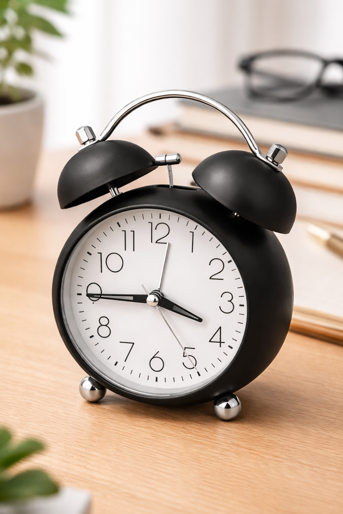Siyah Renk Mini Dekoratif Işıklı Alarmlı Yuvarlak Masa Saati