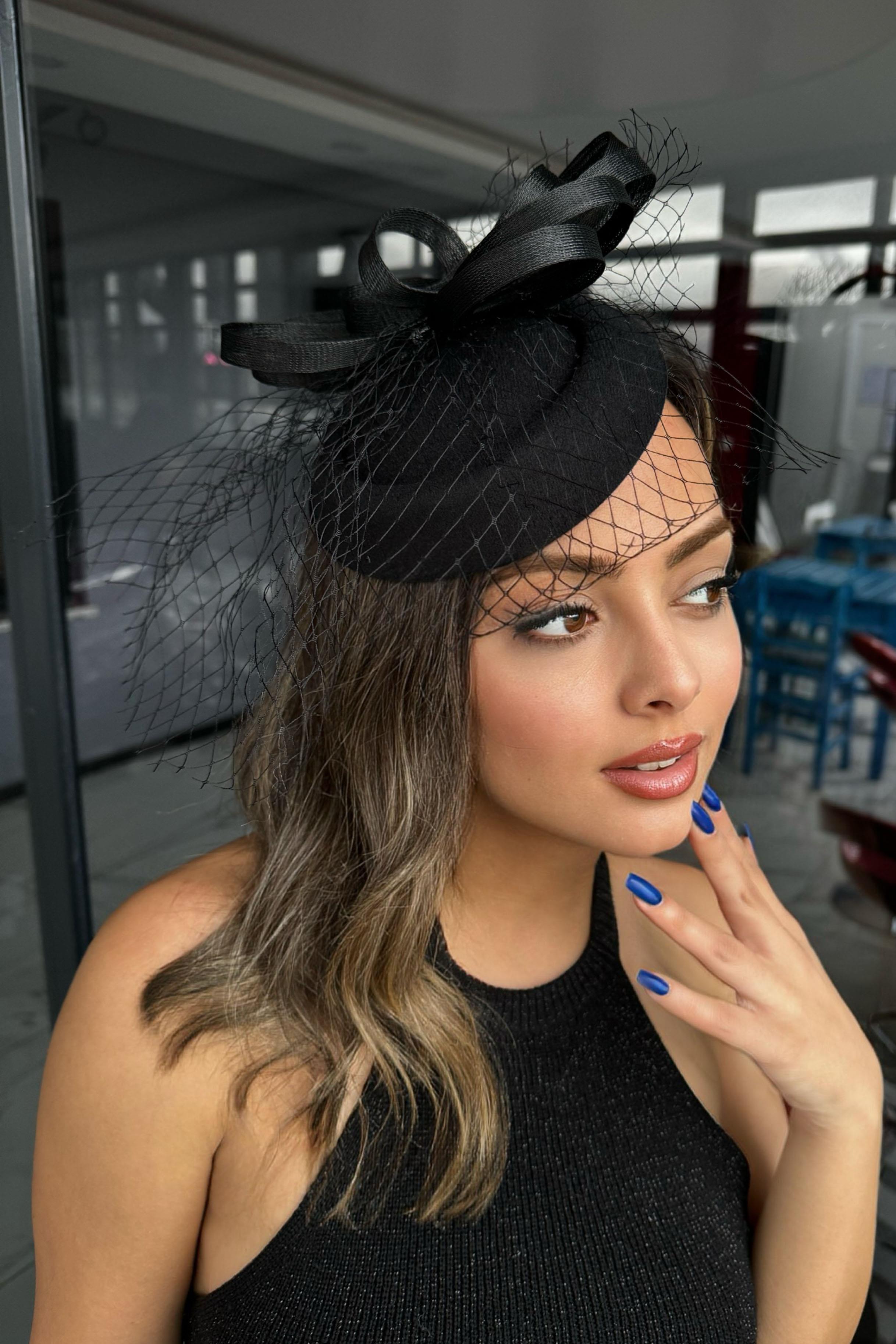 Siyah Renk Nikah Şapkası/Vualet Şapka