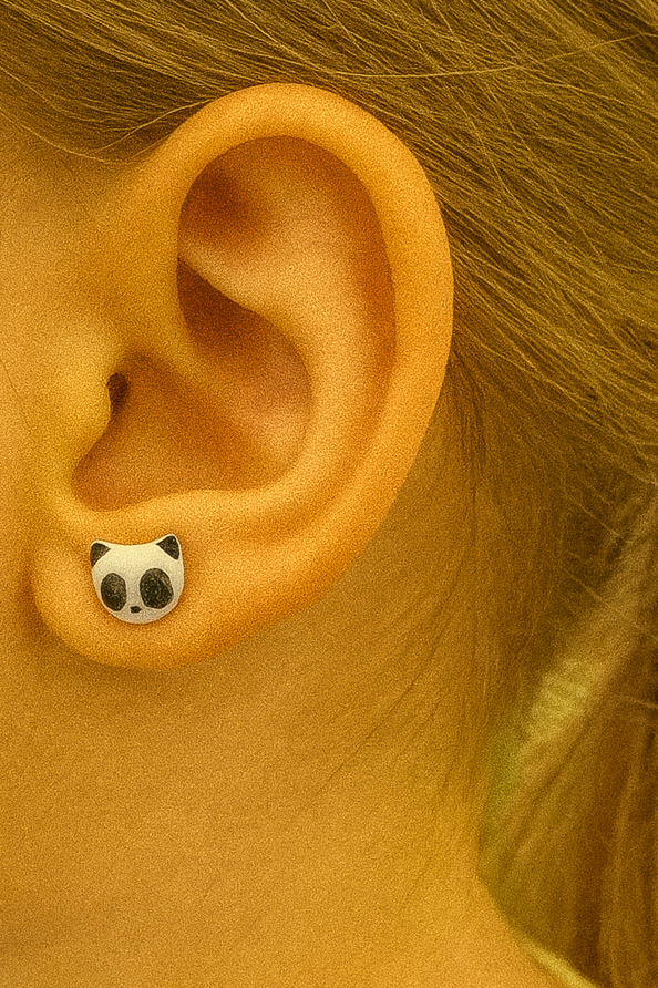 Siyah Ve Beyaz Panda Figürlü Çocuk Küpe (Çift)