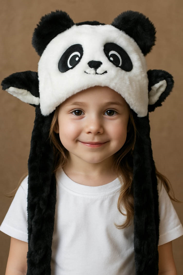 Siyah Ve Beyaz Renk Panda Figürlü Peluş Şapka