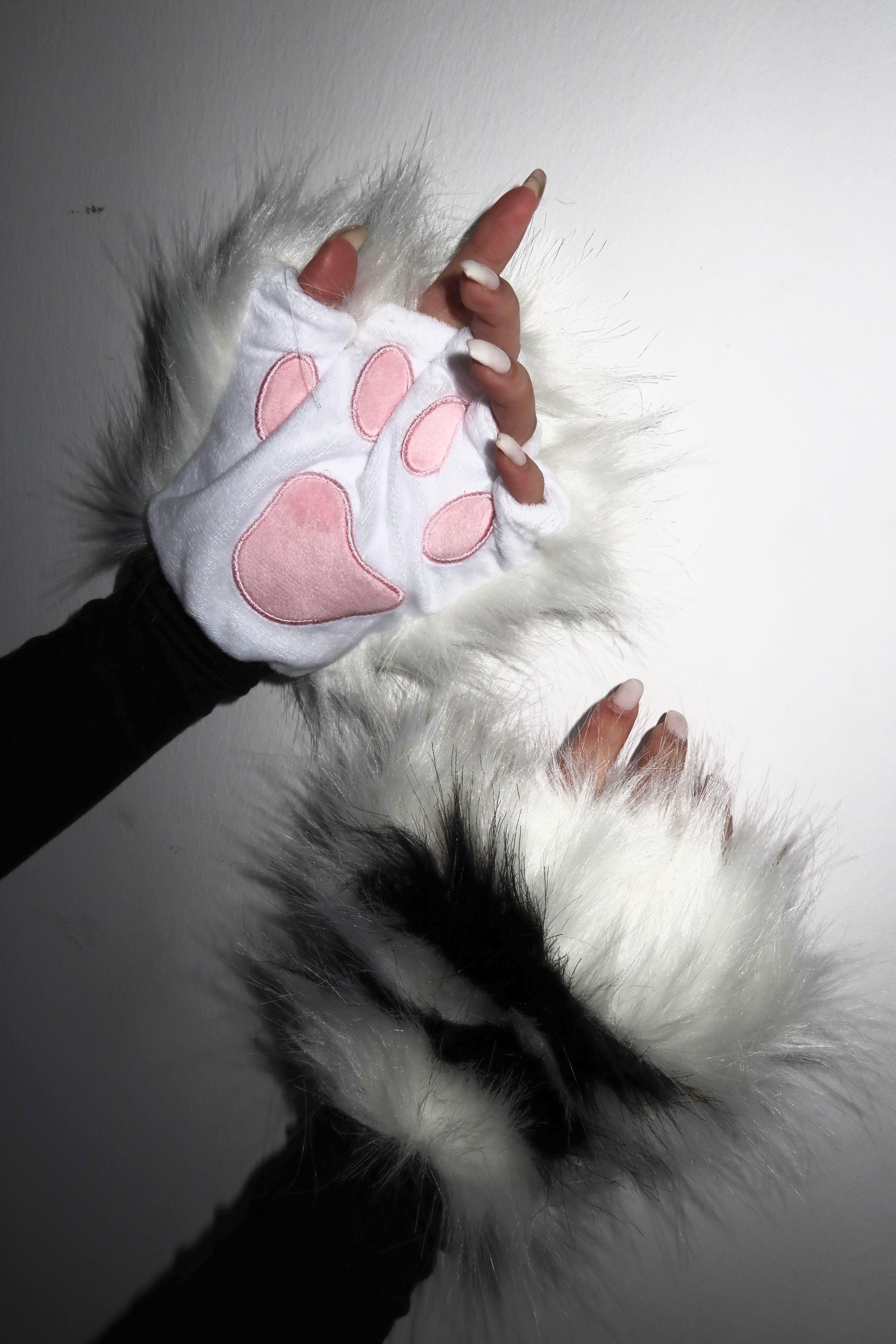 Siyah Ve Beyaz Renk Patili Peluş Eldiven