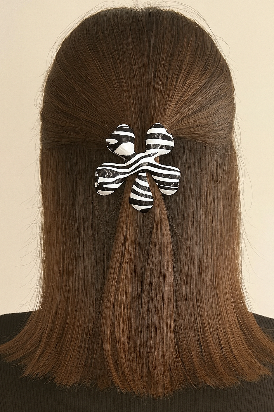 Siyah Ve Beyaz Renk Zebra Desenli Metal Mini Mandal Toka