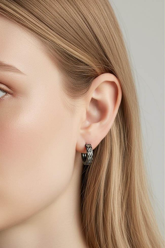 Siyah Ve Gümüş Renk Çelik Halka Küpe (Çift)