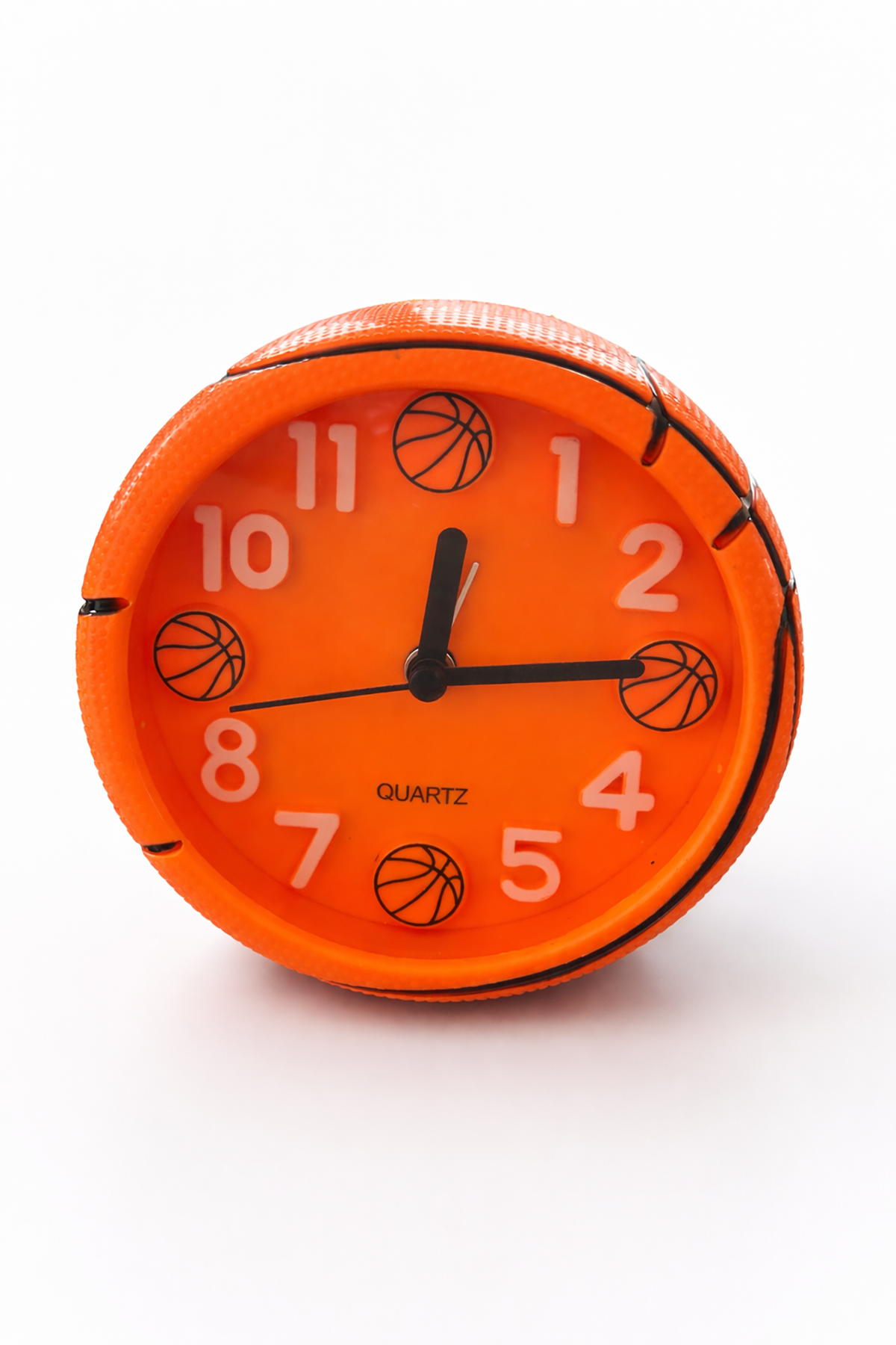 Turuncu Renk Basketbol Topu Figürlü Mini Dekoratif Alarmlı Yuvarlak Masa Saati