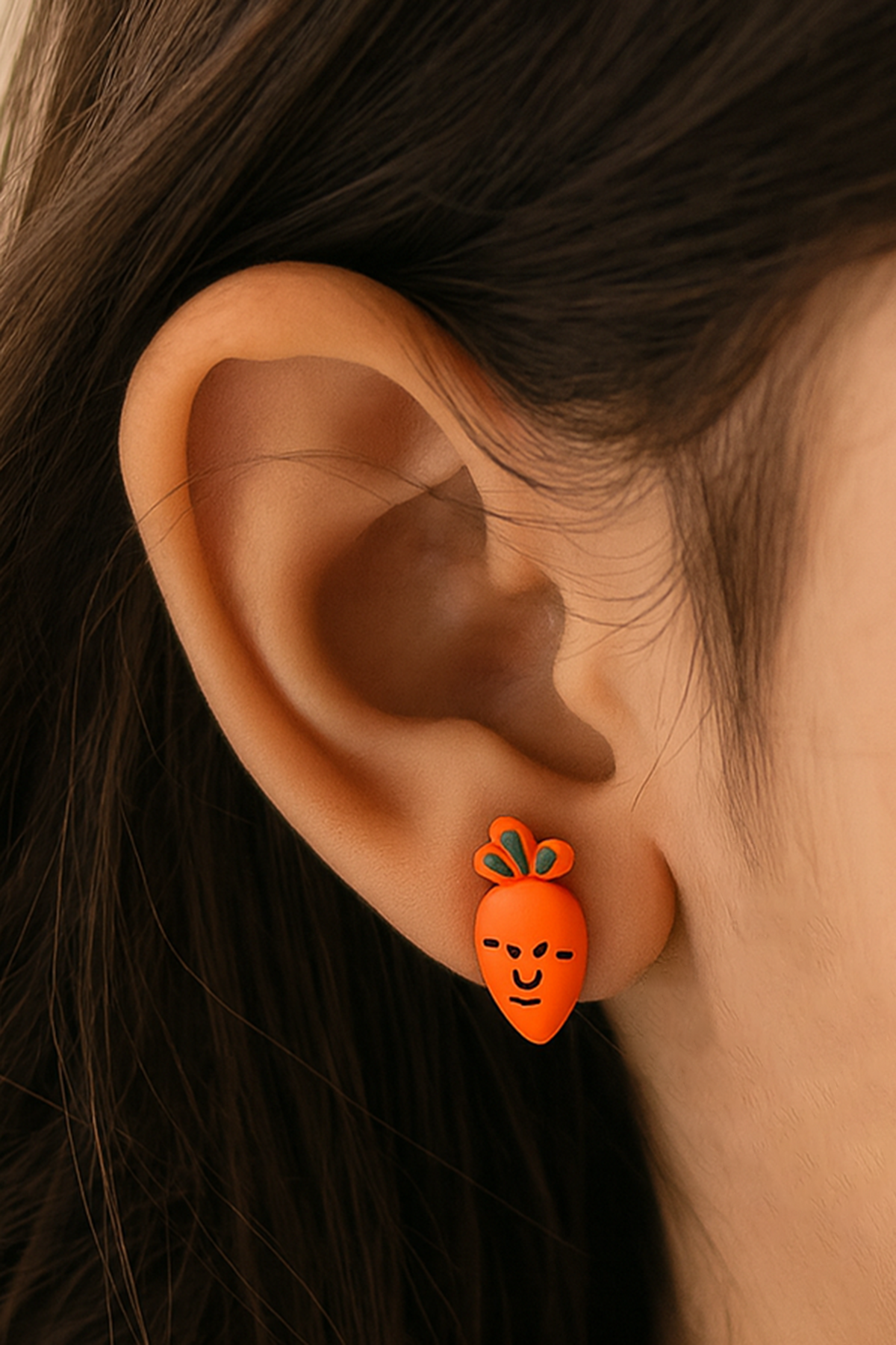 Turuncu Renk Havuç Figürlü Çocuk Küpe (Çift)