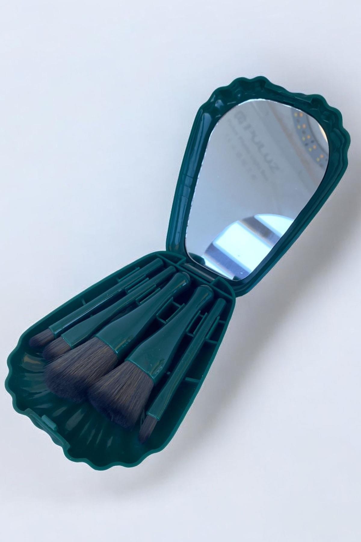 Yeşil Renk Deniz Kabuğu Figürlü Makyaj Fırçası/ Ayna Set